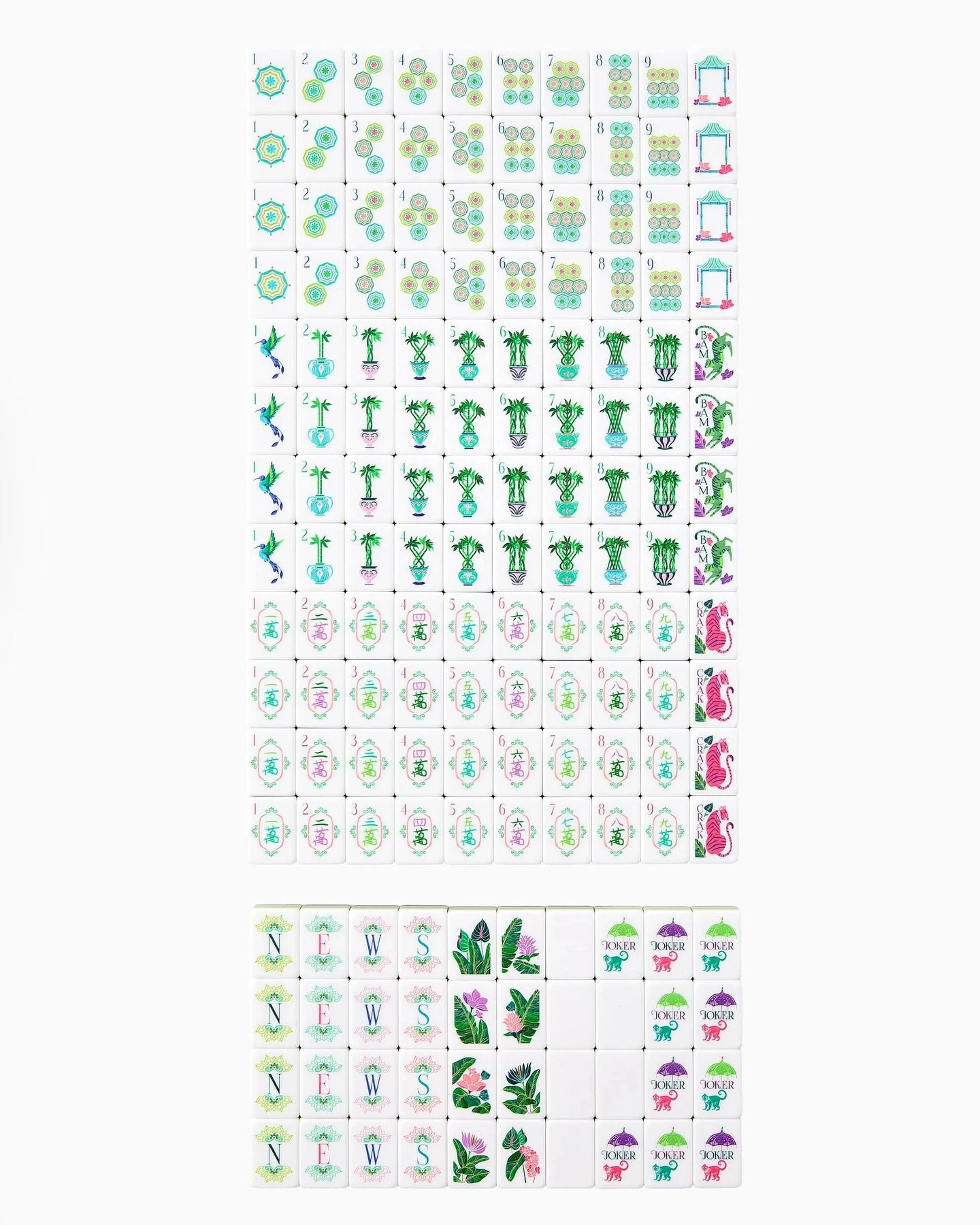 Elegant, refined, and effortlessly chic, the Palm Royale Tiles bring a touch of natural sophistication to your game. Featuring a bamboo-inspired backing, these tiles evoke a sense of timeless beauty, while layers of fresh green and classic ivory hues create a serene yet striking design. Perfect for players who appreciate elevated style and a nod to nature, the Palm Royale Tiles transform every table into a royal retreat.