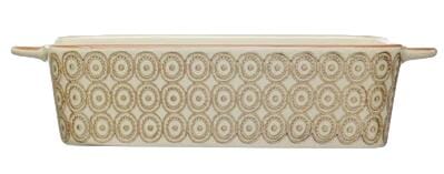 Steam, simmer, and sizzle in style with our thoughtfully crafted collection of cookware and bakeware. Explore a wide array of pieces that are both fashionable and functional including measuring cups, measuring spoons, bake pans, crocks, mixing bowls, batter bowls, berry baskets, scoops, strainers, spreaders, and so much more. Choose from a vast selection of materials from wood and steel to stoneware and glass, and styles from classic farmhouse and mid-century modern to vintage glam and southwestern. Add a touch of beauty to meal prep or holiday baking with this carefully curated collection of kitchen wares that are sure to impress. This eclectic set of bake pans showcases durable stoneware construction with 4 unique, hand-stamped designs. This piece is food safe. Dishwasher safe. Made from stoneware.
